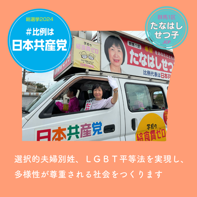 暮らし応援、平和、ジェンダー平等、気候危機打開の日本をご一緒につくりましょう。
