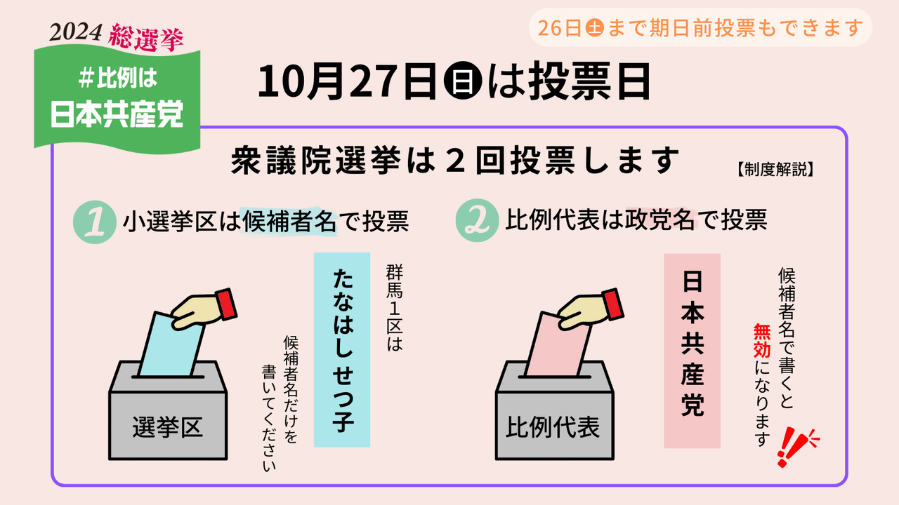10月16日(水)から27日(土)まで期日前投票が利用できます。